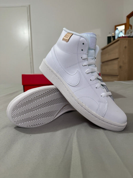 Nike Court Royale 2 Mid Women Trainers Triple White Leather Shoes BNIB All Sizes