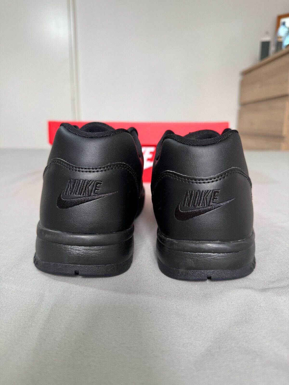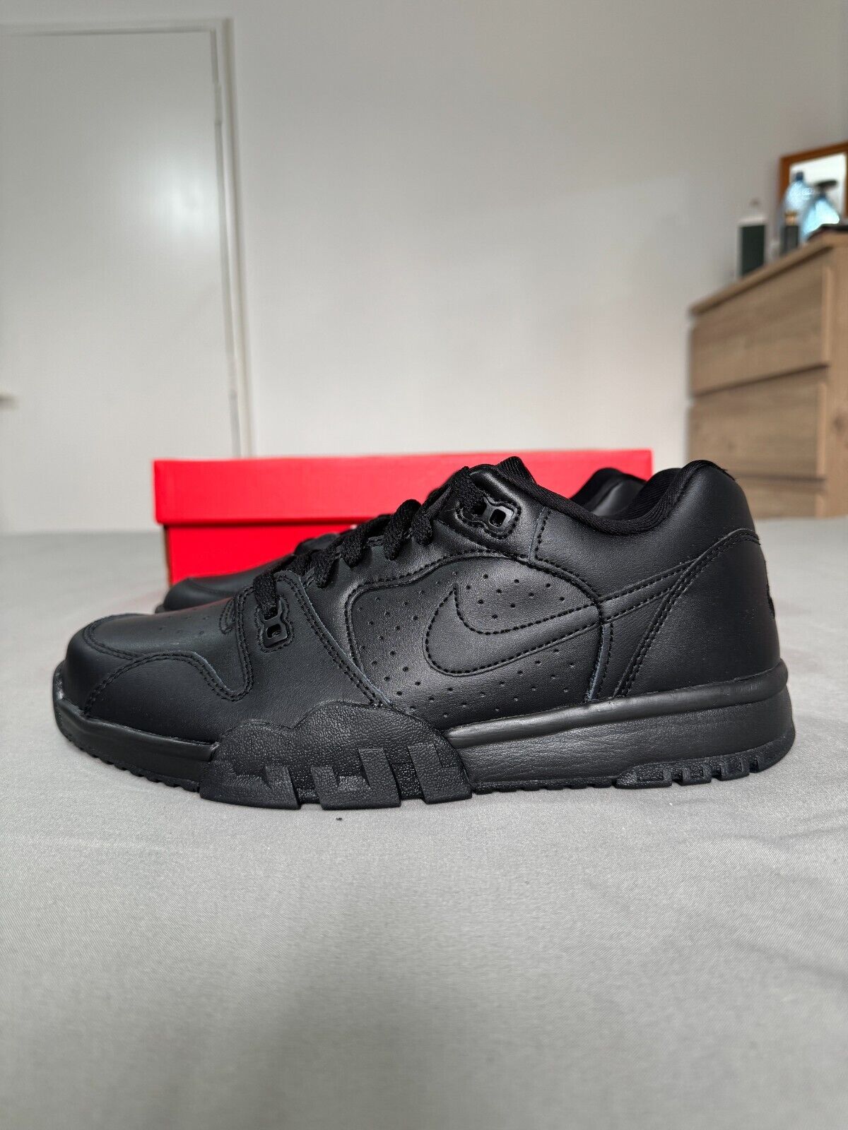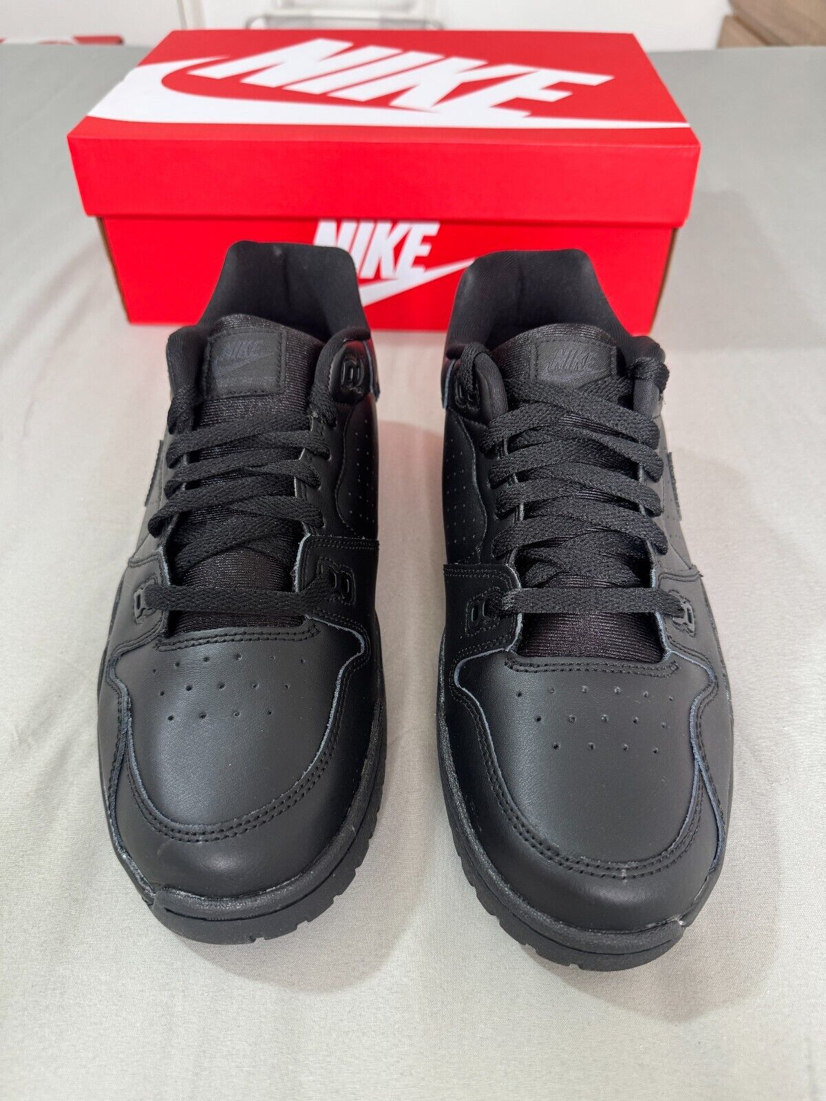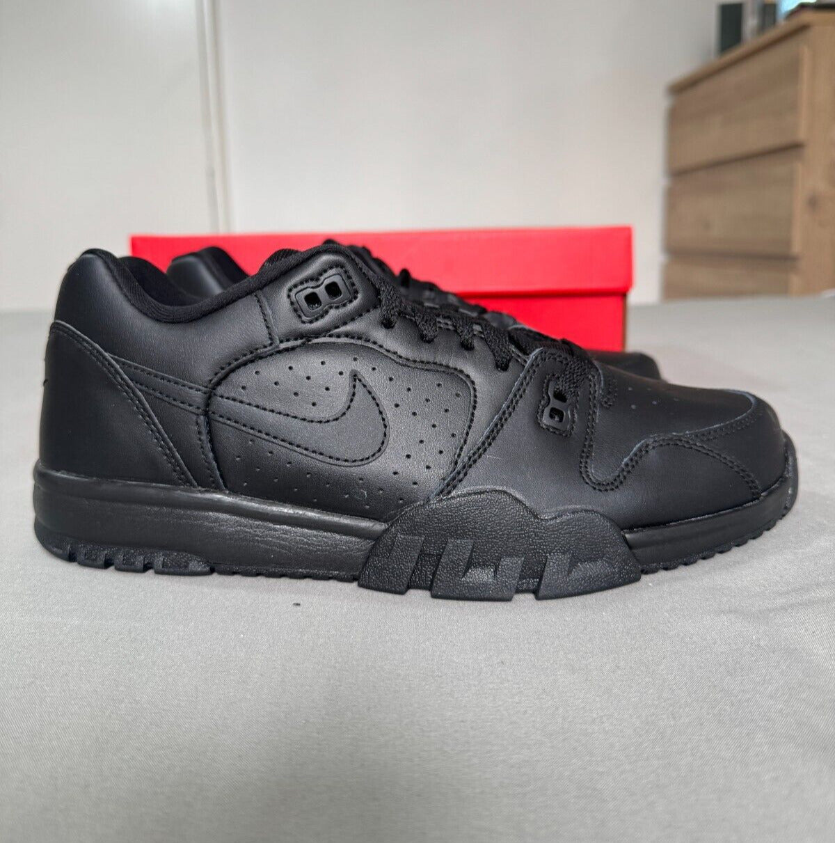 Nike Cross Trainers Low Men Sneaker Triple Black Leather Shoe Size UK 8,9,9.5,13