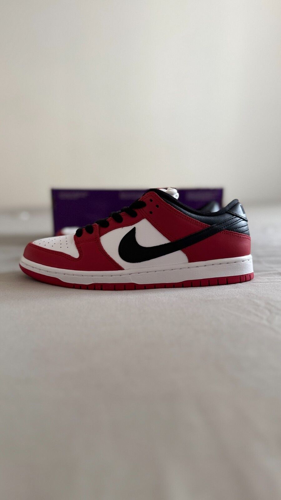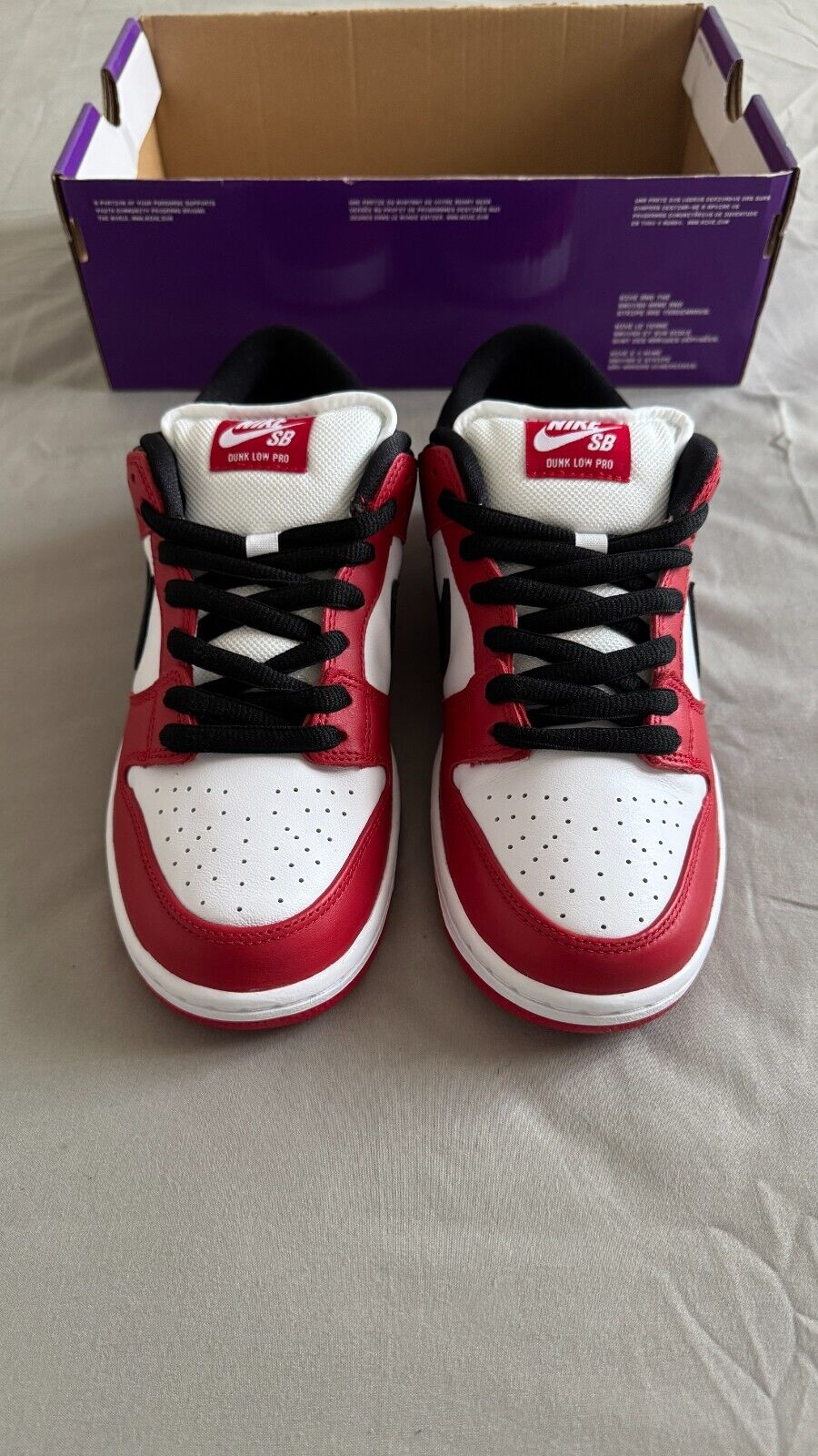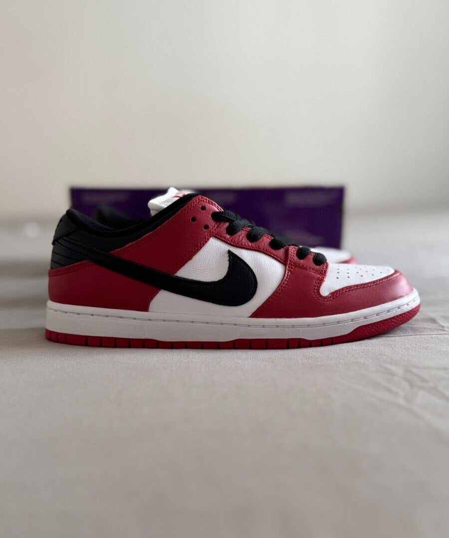 Nike SB Dunk Low Pro Trainers Red White Black J-Pack Chicago Sneaker Size UK 6,7
